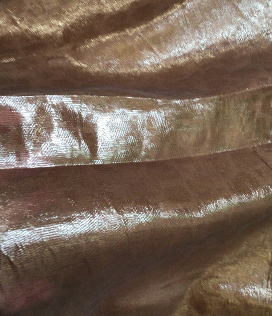 Tessuto jersey in poliestere lycra placato oro per costumi da bagno o abiti. Campione dimostrativo 10 cm. x 10 cm.
