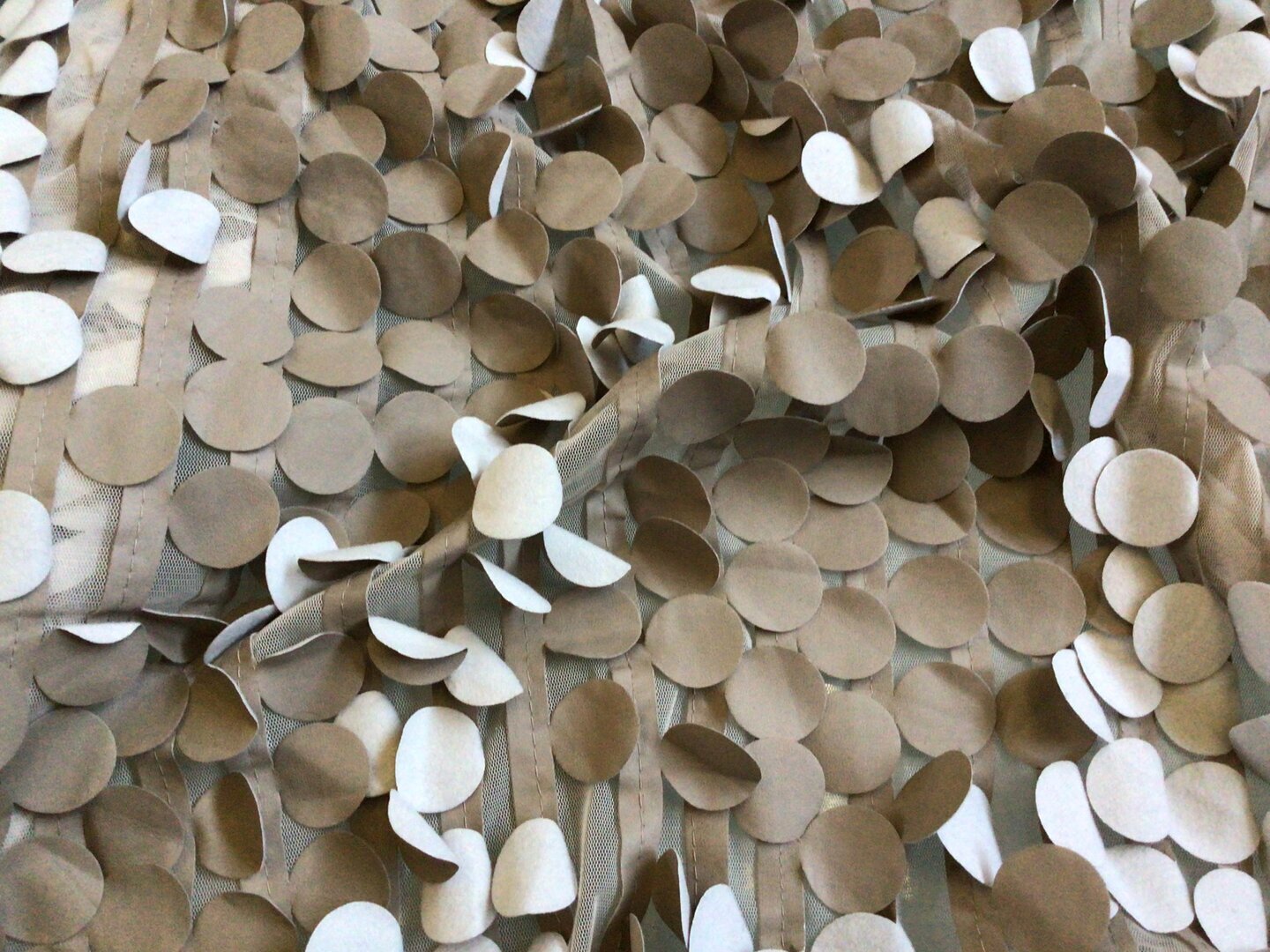 Tessuto tecnico a stock anche a peso con paillette tecniche ricamate a disegno. Campione dimostrativo 10 cm x 10 cm. Disponibilità immediata in magazzino.
