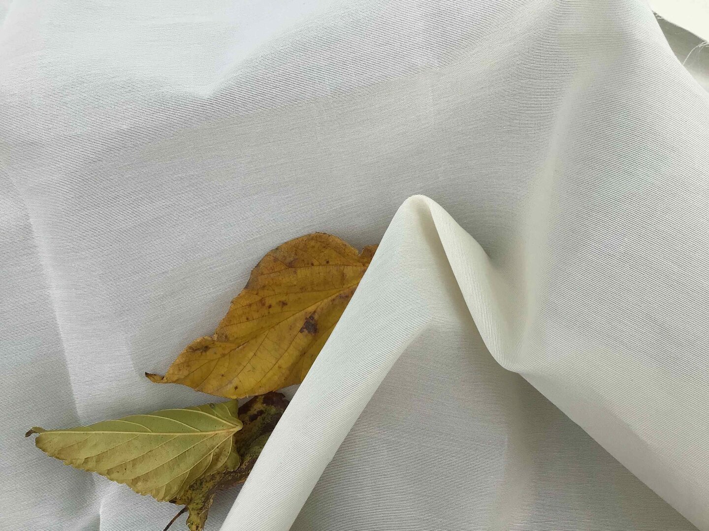 Tessuto in pura seta a stock tipo faile, colore bianco naturale, per abiti haute couture, trench o giacche di lusso. Prodotto di qualità eccellente made in Italy.